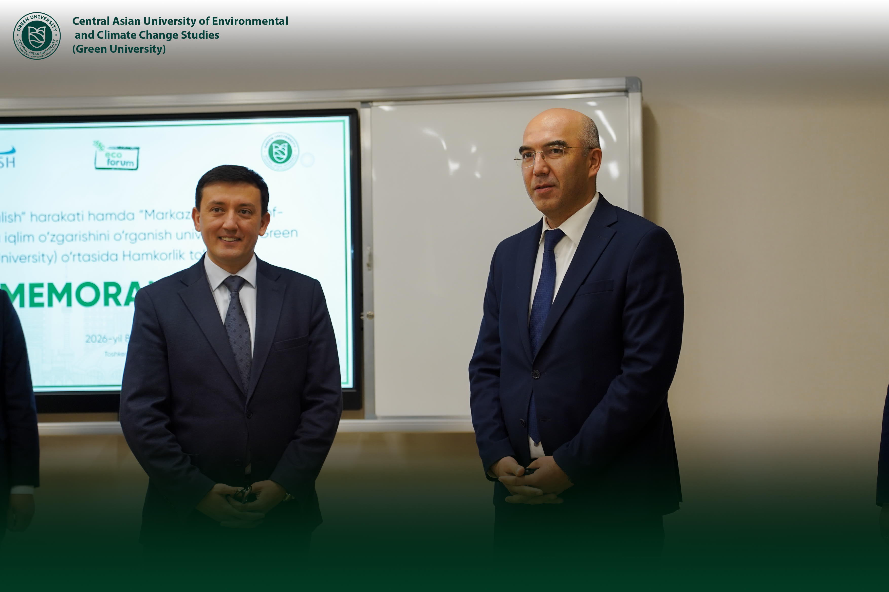 On April 8, 2026, within the framework of the Central Asian Forum of Ecologists and Eco-Activists, a signing ceremony for a Memorandum of Understanding was held between the Central Asian University of Environmental and Climate Change Studies (Green University) and “Yuksalish” Movement.
